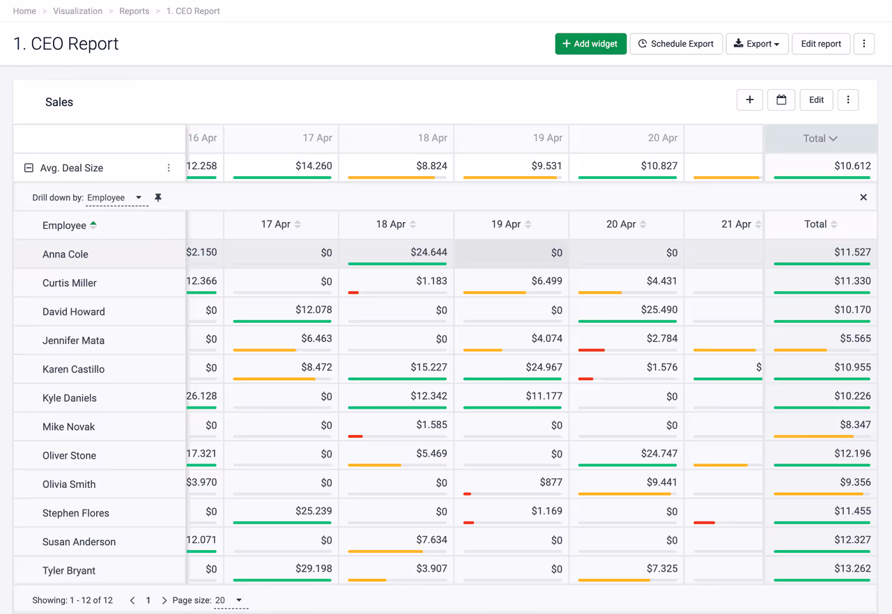 This platform is aimed at mid-market and large enterprises that need real-time knowledge of their performance across sales, service, marketing, and finance. Some users have found it challenging to set up and use, so it may not suit organizations that want to give everyone access to reporting tools.