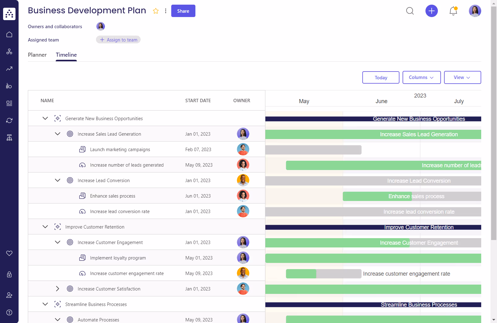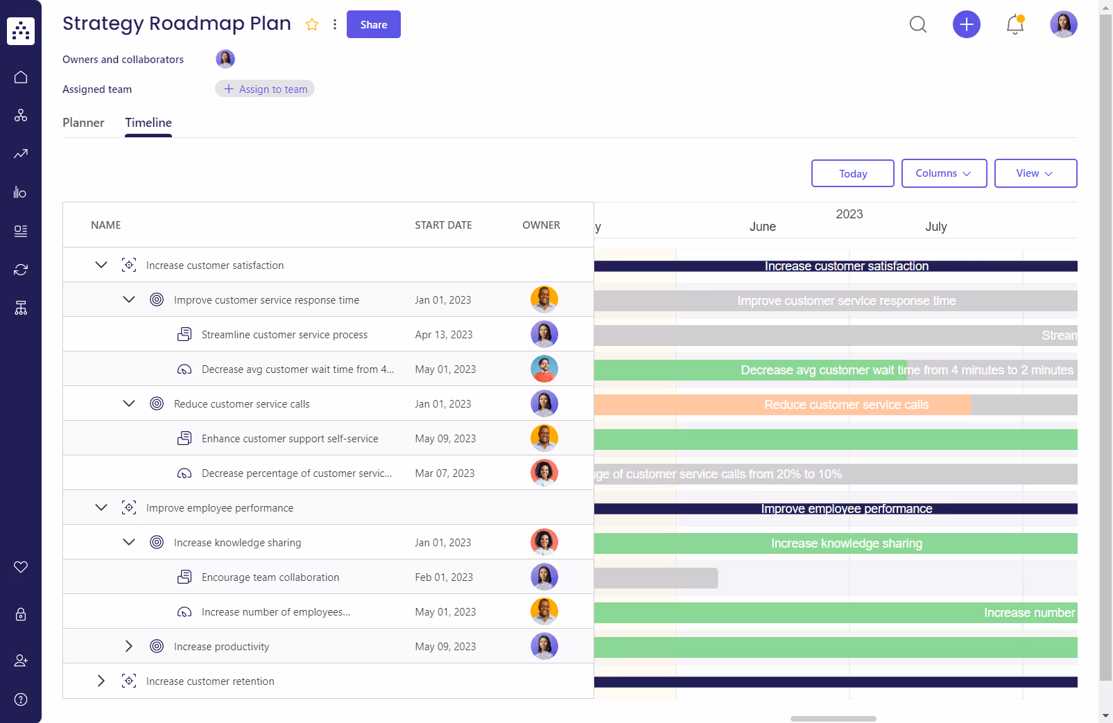 - Greater adaptability: A well-designed business roadmap allows organizations to respond effectively to market, industry, or internal changes. With all data in one place, you get better visibility into how your business performs at every level. This helps you make the right decisions at the right time.