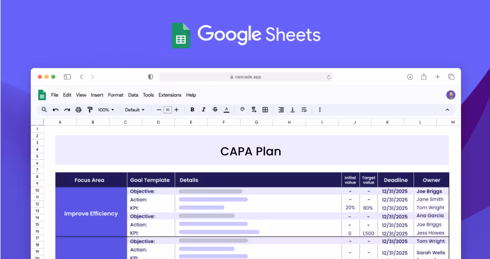 If you’re ready to accelerate your strategy beyond traditional spreadsheets and see faster results, Cascade Strategy Execution Software is the ideal upgrade. Unlike spreadsheets, which can be slow and error-prone, Cascade offers a dynamic platform with real-time updates, automated reporting, and centralized collaboration. This allows teams to adapt quickly, track progress effectively, and stay aligned across various functional areas. Enhance your strategic management with Cascade’s visual dashboards and seamless plan-to-execution transition. Sign-up for free or book a demo with one of our strategy experts to optimize execution today!