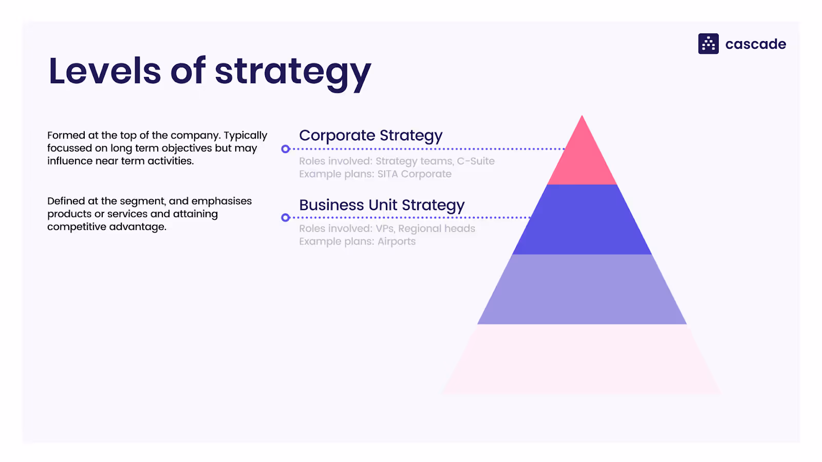 Yet, the principles remain. To understand how strategies shift, we'll examine the existing strategy levels and how an organization can apply them.