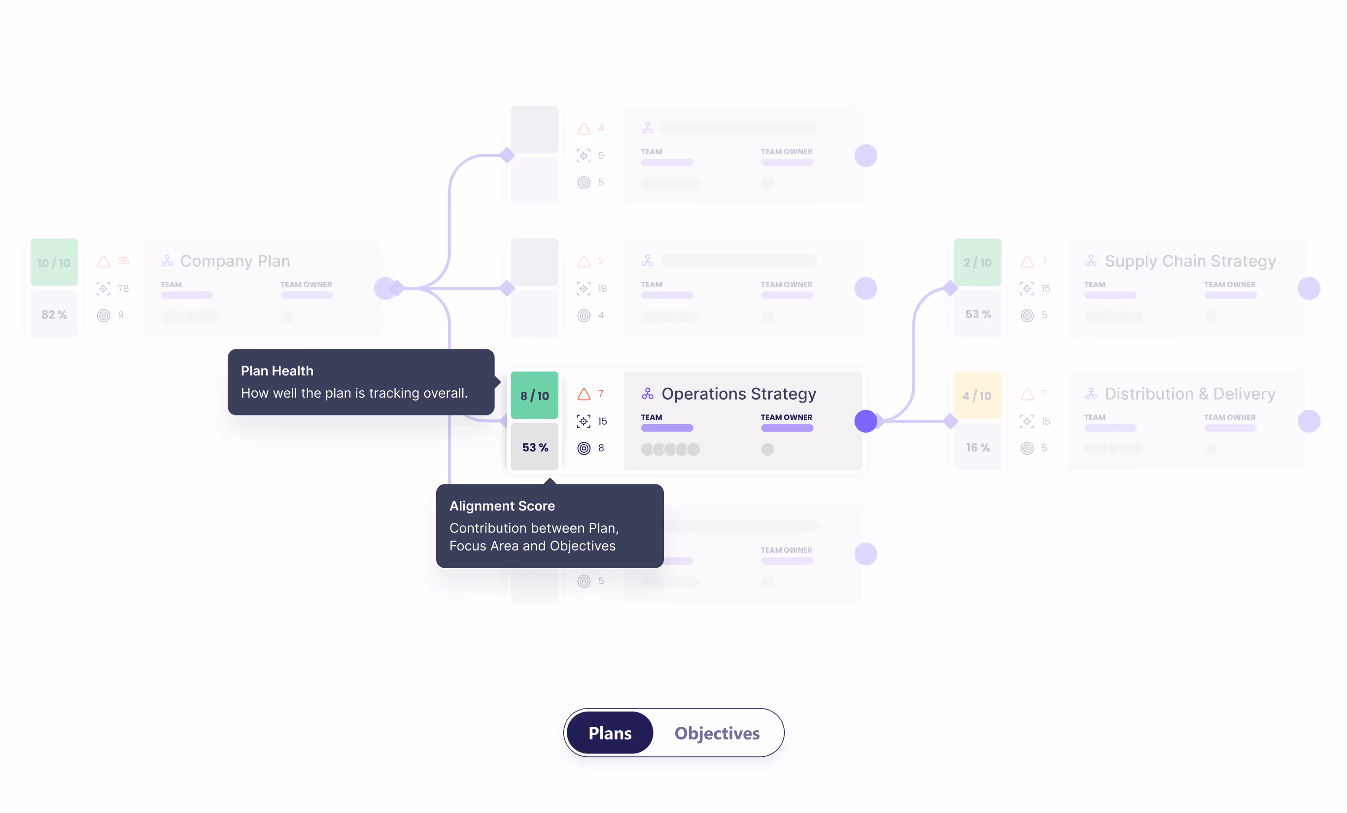 Get real-time alignment scores for each team in the business, so that you can monitor how their plans are coming together and how they deliver against the bigger picture
