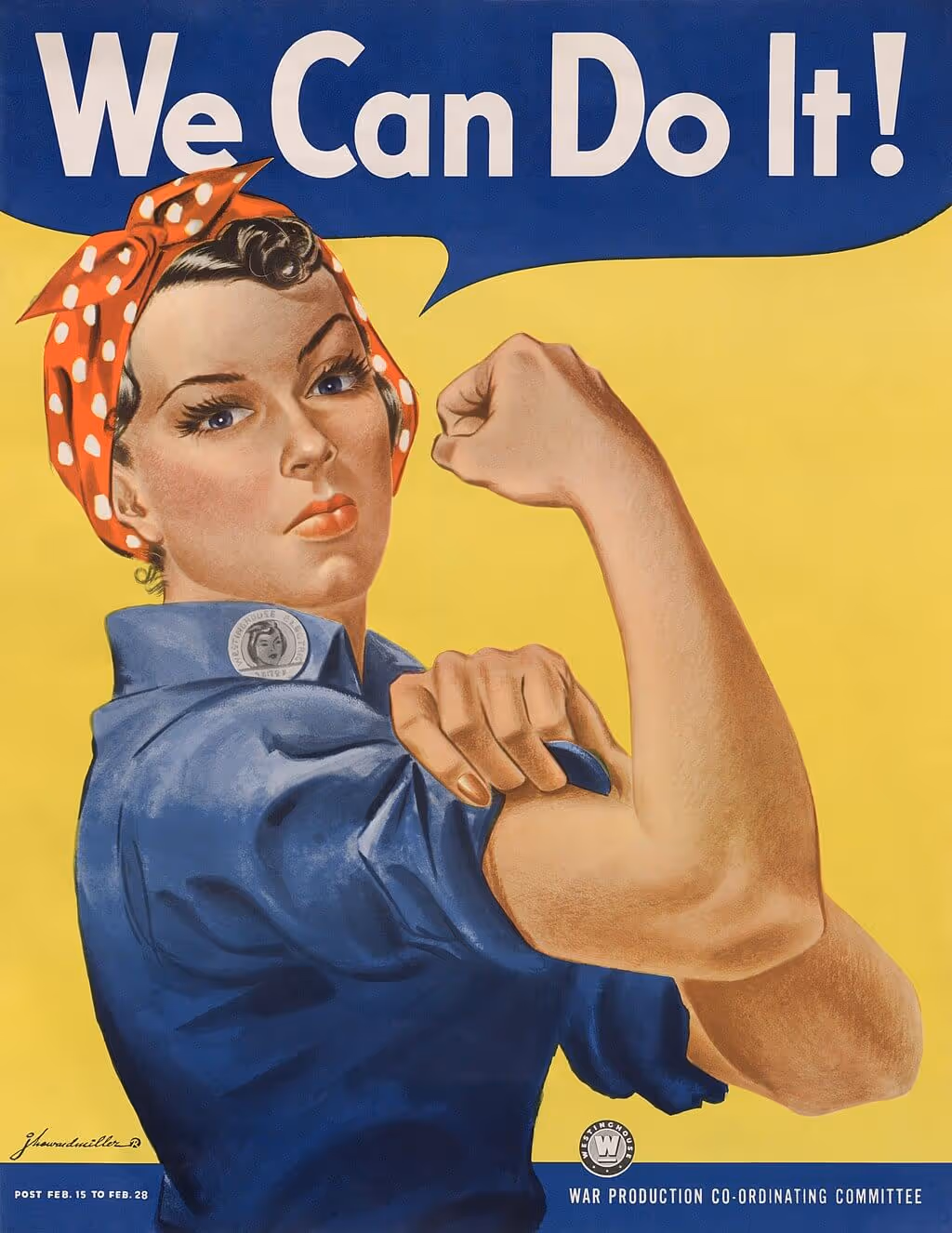 In 1944, Rose Will Monroe was working as a rivet gun operator at Ford’s Willow Run facility. She was chosen to serve as the icon to promote the sale of bonds to support the war effort. Her fictional character “Rosie the Riveter” was featured on the iconic “We Can Do It!” posters all across the country. The campaign was a success and is noted as one of the most iconic images from the era.