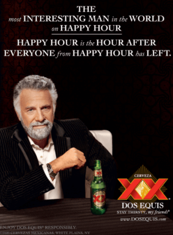 And if being associated with the most "dangerous" man in the world isn't enough, Dos Equis (a Heineken brand) capitalized on this trope as well. The series of "Most Interesting Man in the World" commercials featured a handsome, classy, older gentleman drinking a Dos Equis beer—oozing an elegant vibe that conveyed a beer of superior taste and quality.