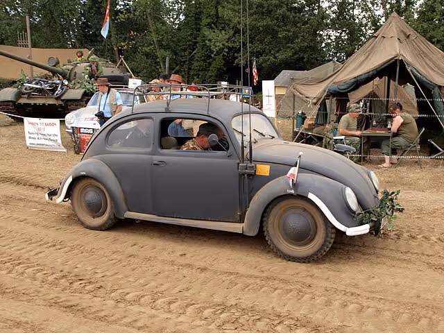 However, with the outbreak of war, Volkswagen was ordered to create a military version of the car. Alongside the military Beetle, the company also created amphibious vehicles, bunker stoves, and air armaments for the army.