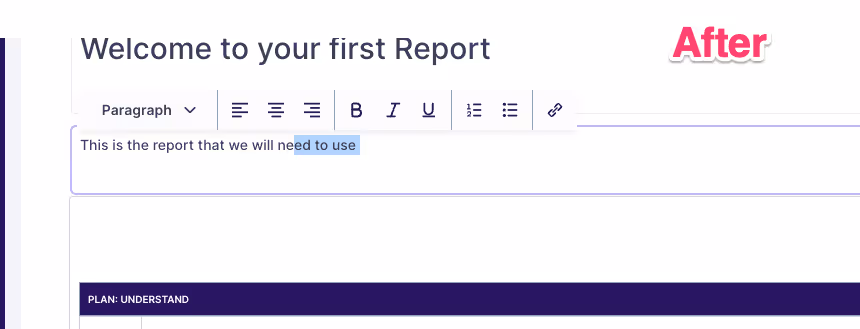 - Improved text options in Reports - Text widgets in Reports now have more formatting options, including bullet points, links, bold, italics to create better looking text sections. Available on all reports text widgets now.