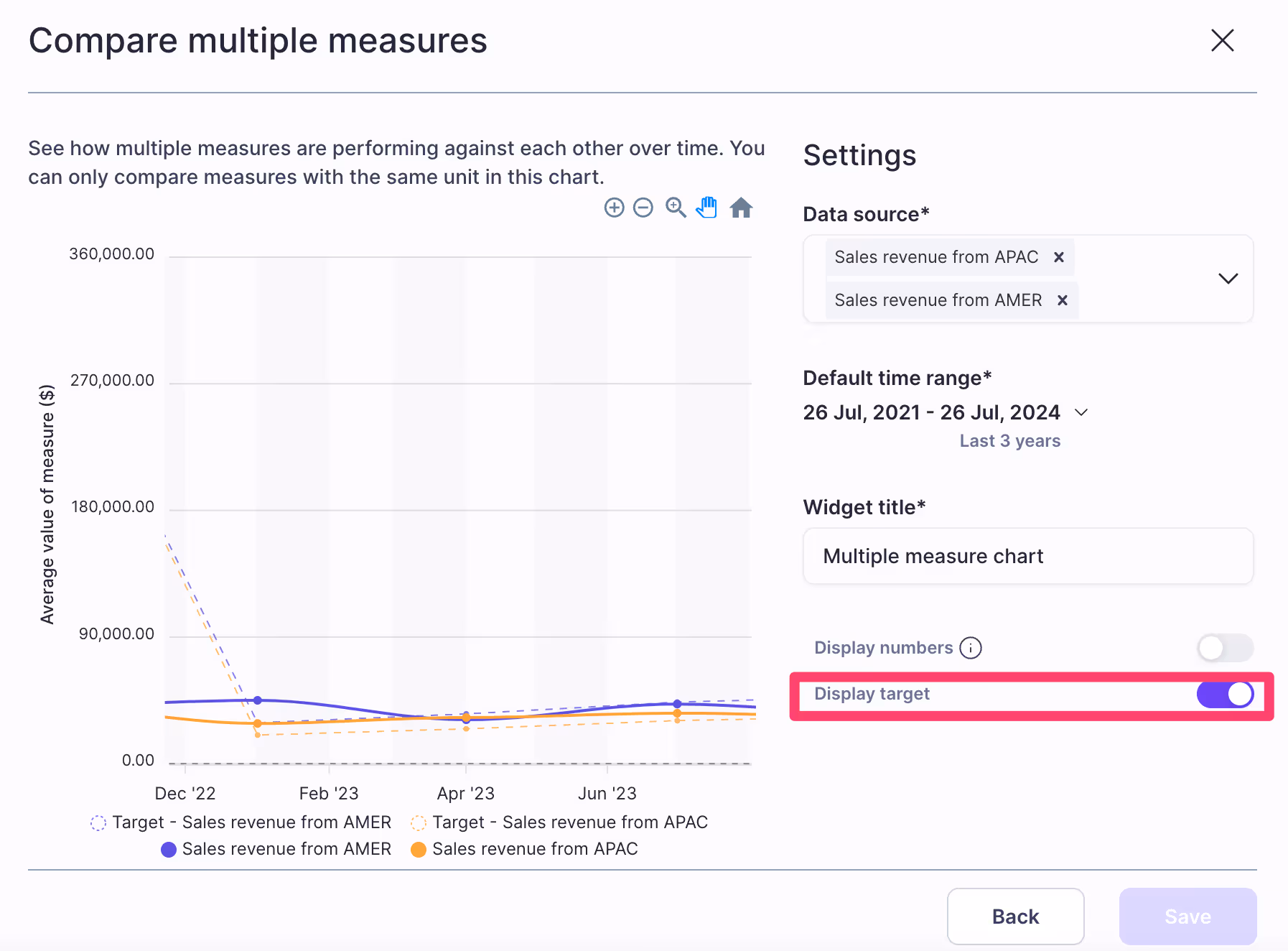 - Targets on Compare Multiple Measures charts - Show targets on the compare multiple measures widgets. Available now on all Multi-Measure charts.